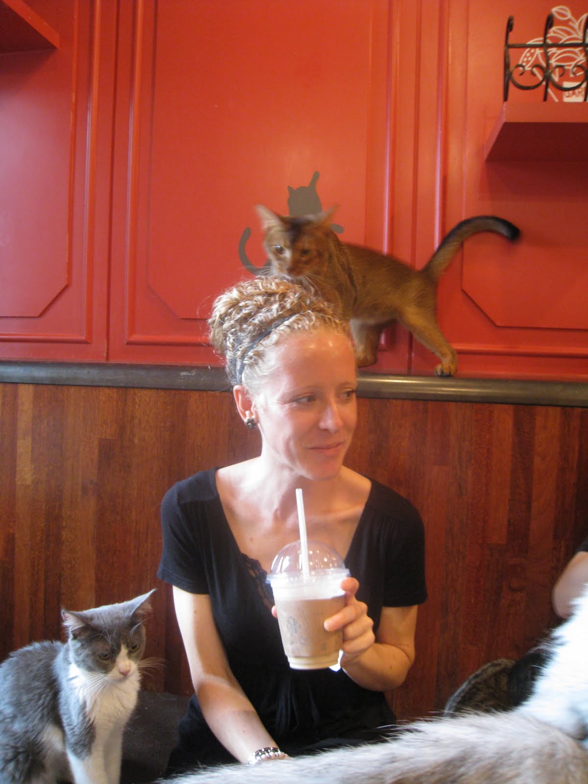 Since then the kitten has been settling in little by little. We convereted the small trash/storage room into his domain. Its a little stinky now. But it works well for him. He still hides every time we get too close to him and hisses when I pick him up but he's making progress. We checked on him every day at lunch last week, Jason and I at differnent times, and this weekend I've picked him up a lot. He's also now playing with ribbons and letting us watch him eat. And just last night and again this afternoon he fell asleep in my lap while I petted his chest and chin. Progress! Baby steps! Tomorrow we are taking him to the vet to see if he is healthy. If so we will begin trying to make preperations to take him to the USA with us. Just have to find someone to house-cat sit while we are in Taiwan! Eek such poor timing!